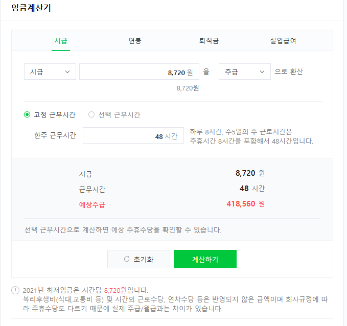 네이버에서 최저임금 계산기를 검색하면