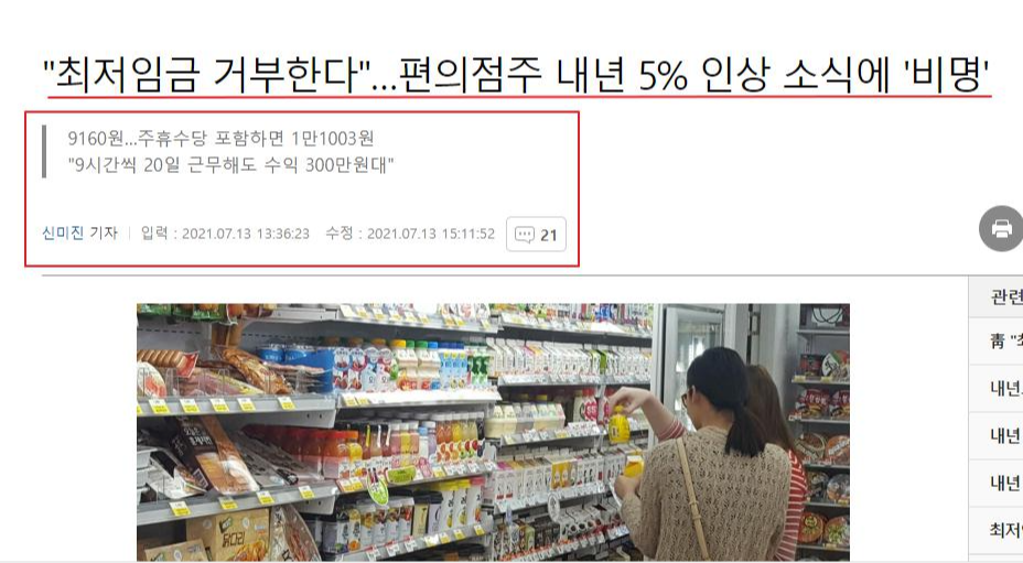 모두 고려하여 나온 최저임금인지 의문스럽다.