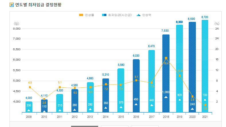 그럼 현재 2021년은 얼마일까? : 8720원이다.